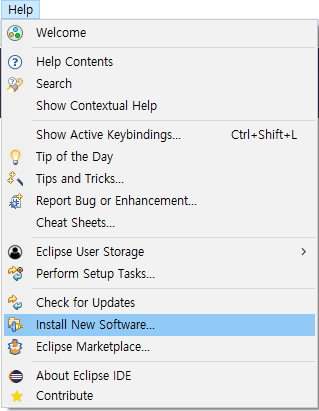 이클립스의 상단 메뉴 중 Help > Eclipse Marketplace...를 선택합니다. Find 창에서 STS를 검색합니다.